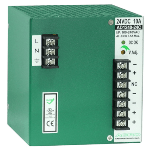本系列包含 AD1240-12C,AD1240-24C 及AD1240-48C,堅固耐用及高功率密度的設計,滿足節省空間以及在工業上之應用。所有型號內建乾接點Alarm訊號及o-ring diode 以建置備援應用並裝置過電壓保護、過載保護、短路保護,等保護措施。周全的設計,可安裝在T.35軌道上及使用附加之固定片裝載在墻面上。