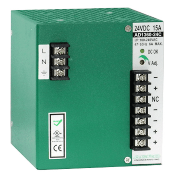 本系列包含 AD1360-12C,AD1360-24C 及AD1360-48C,堅固耐用及高功率密度的設的設計,滿足節省空間以及在工業上之應用,所有型號內建乾接點Alarm訊號及 o-ring diode 以建置備援應用並裝置過電壓保護、過載保護、短路保護,等保護措施。周全的設計,可安裝在T.35軌道上及使用附加之固定片裝載在牆面上。