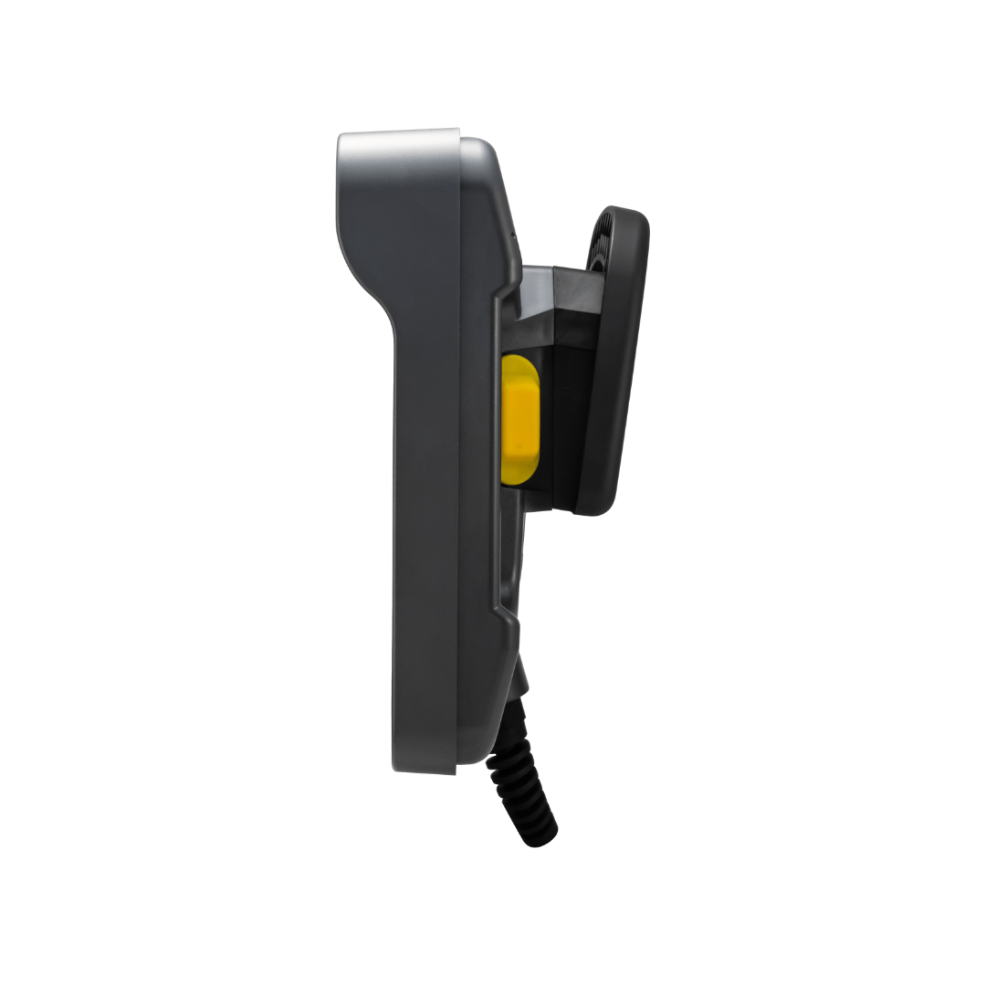 cMT3106XM 實現人機邊走邊控自由,在纜線範圍內(6、10、20*1公尺),貼近設備觀察,立即調校控制指令,適合應用於大型廠房、產線設備複雜或較險峻的工廠環境,提升跨站點操作效率。背面設計人體工學握把,長時間持握不易疲勞。